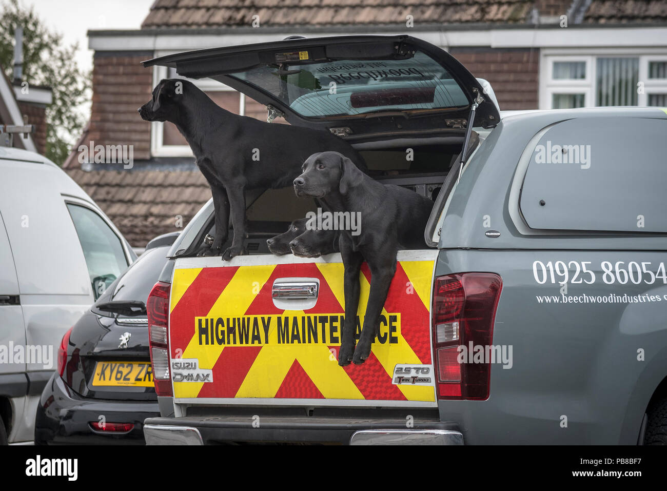 Schwarzer Labrador Wachhunde In Der Ruckseite Der Pickup Stockfotografie Alamy