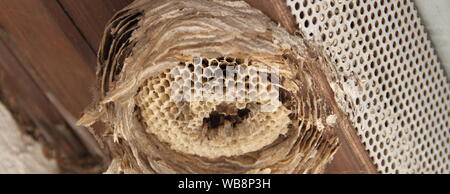 Wespen Das Problem Verursacht Durch Den Bau Von Nest Unter Dem Dach Von Haus Stockfotografie Alamy