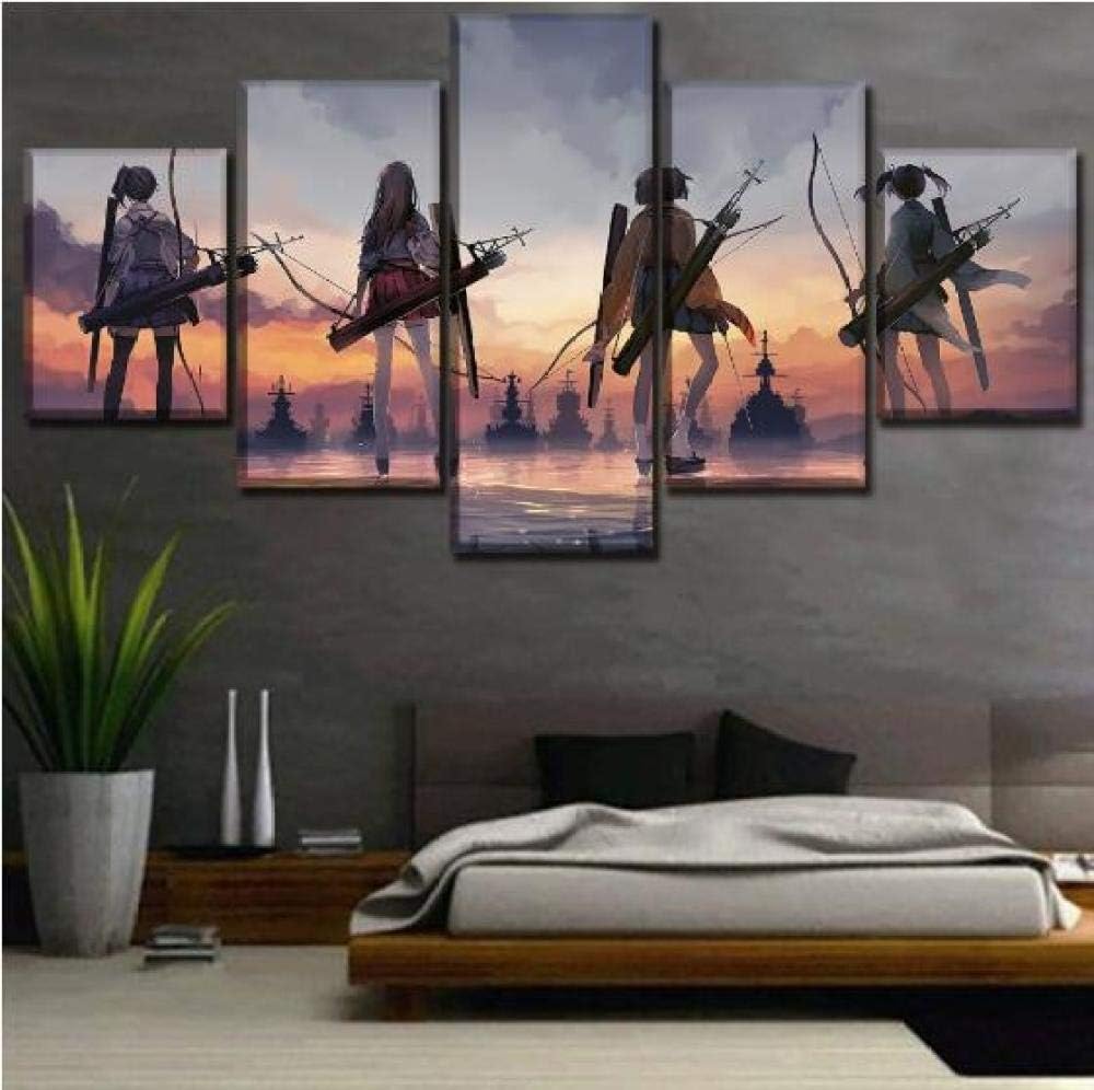 Amazon Com Wall Art 5 Panel Anime Kantai Collection Picture Modern Painting Living Room Canvas Wall Art Bedroom Decor Size 3 Frameless Posters Prints