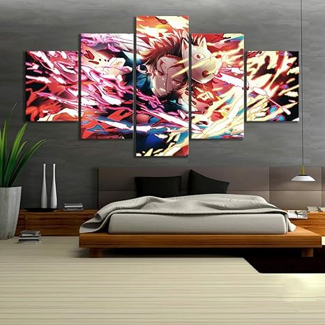 Amazon Com 5 Panels Hd Anime Boy Picture Kamado Tanjirou Demon Slayer Kimetsu No Yaiba Poster Animation Art Wall Decor Paintings A 40 60 2 40 80x2 40 100 1 Posters Prints