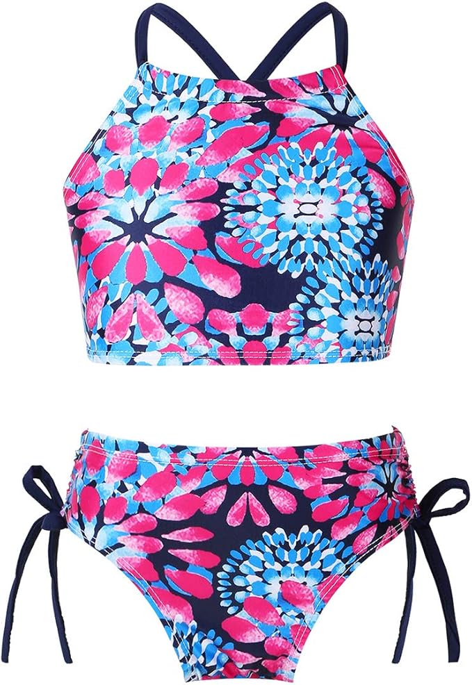 Aislor Aislor Kinder Badeanzug Blumen Bikini Madchen Sommer Schwimmanzug Armellos Bikinioberteil Neckholder Bh Mit Bikinislip Gr 110 164 Bikinis Amazon De Bekleidung