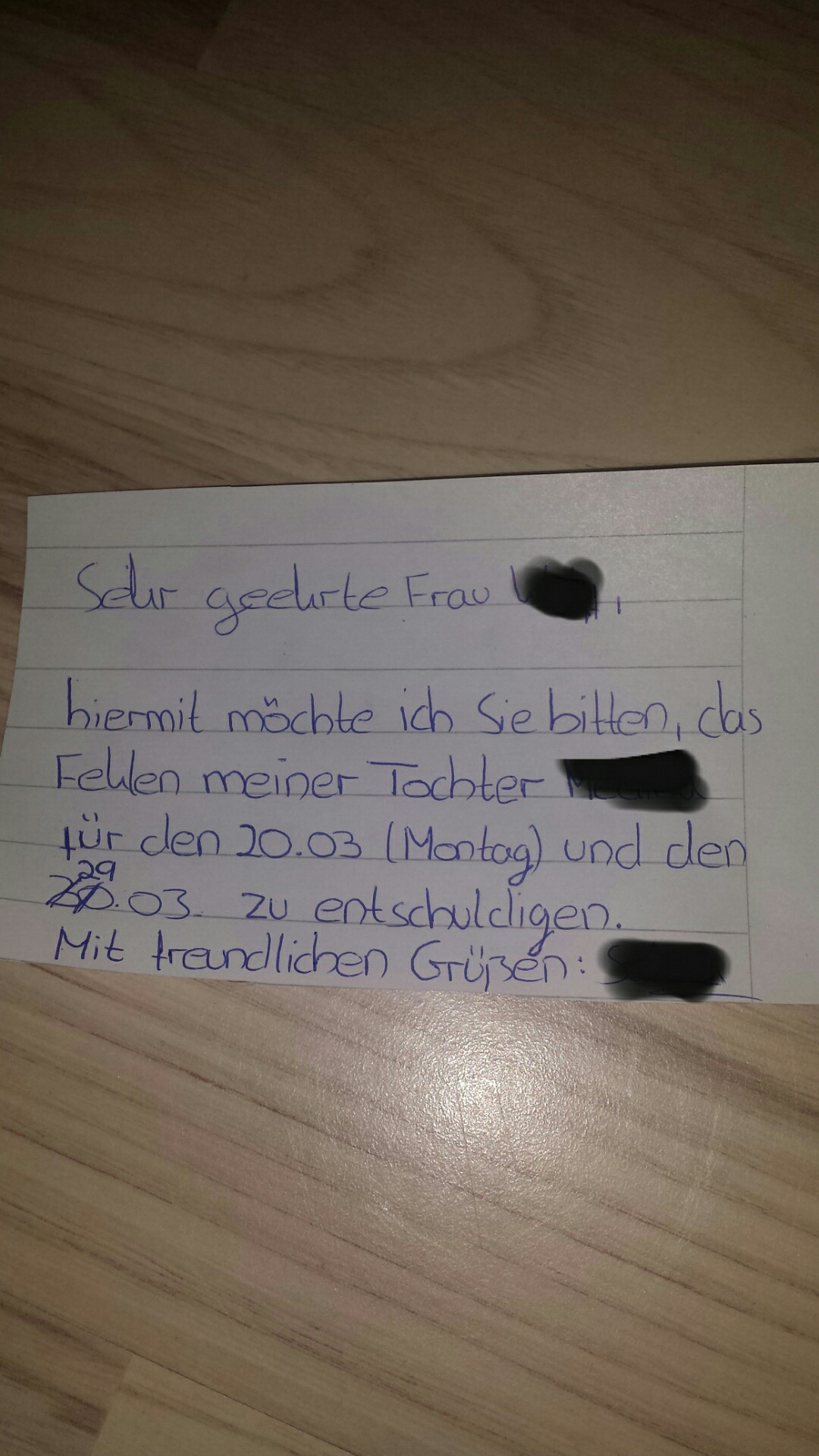 Das nicht mitmachen meiner Tochter am Sportunterricht zu entschuldigen. Hallo, Ich habe seit kurzem meine Periode und wir haben morgen Sport (Schulsport) Ich habe meine Mutter gebeten, mir eine Entschuldigung zu schreiben, weil ich es mir halt unangenehm vorstelle Sport zu machen, va, weil wir im Moment 30Minutenlauf in der Schule. Einen Entschuldigungsbrief für die Schule verfassen Ob es nun um einen Entschuldigungsbrief für die fehlenden Hausaufgaben, versäumte Schulstunden oder den verpassten Sportunterricht geht, derartige Schreiben folgen einem sehr ähnlichen Muster Eltern können daher diese Vorlage nutzen, um eine Entschuldigung für ihre Kinder aufzusetzen.