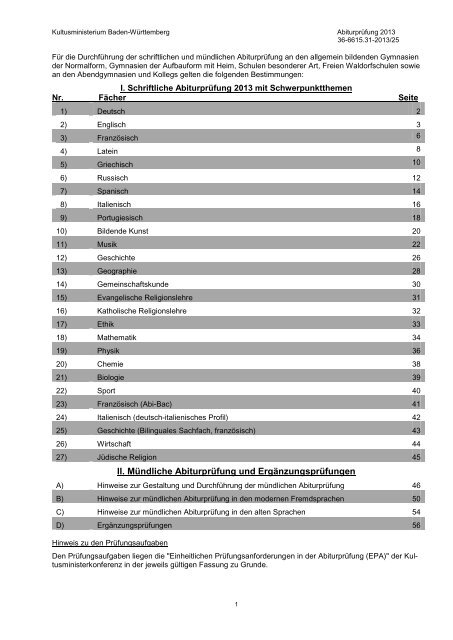Schwerpunktthemen Abitur 13 Zum Kultusportal