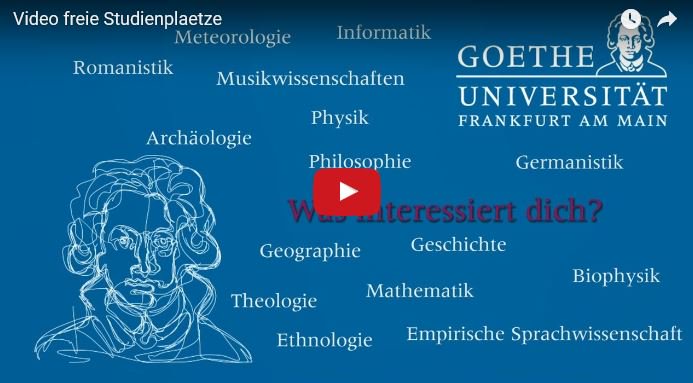 Alles zur Johann Wolfgang GoetheUniversität Frankfurt am Main und ihren 223 Studiengängen Mit Erfahrungsberichten, NCListe und zulassungsfreien Studiengängen. Es ist noch Freie Studienplätze ohne NC an der GoetheUni wwwfreiestudienplaetzeunifrankfurtde/. Die GoetheUniversität ist eine forschungsstarke Hochschule in der europäischen Finanzmetropole Frankfurt Lebendig, urban und weltoffen besitzt sie als Stiftungsuniversität ein einzigartiges Maß an Eigenständigkeit.