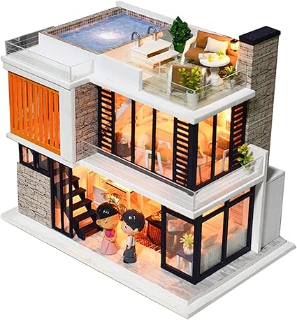 Izzya Diy Puppenhaus Miniatur Haus Selber Bauen Zum Basteln Zubehor Holz Lernspielzeug Spielzeug Kinder 3d Villa Weihnachts Geschenk Amazon De Sport Freizeit