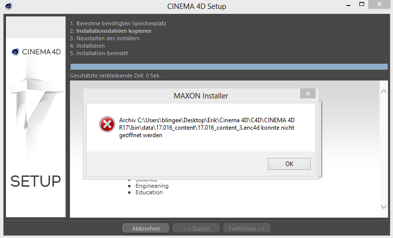 Wieso Installiert Sich Mein Cinema 4d Nicht Richtig Fehlermeldung Installation