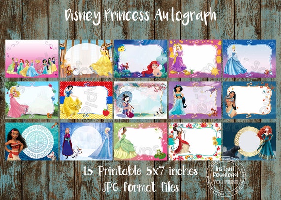 Druckbare Prinzessin Autogrammkarten Disney Prinzessin Etsy