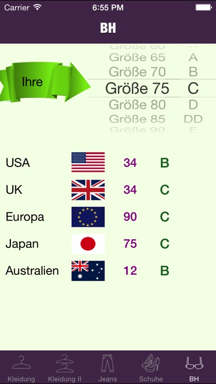 Die BH Größentabelle hilft Dir beim Größe ermitteln oder umrechnen Dabei zeigen wir dir auch, welche ★ BH Größen es gibt ★ und zur dir passen Finde jetzt deine ♥ richtige BH Größe ♥. Amerikanische BH Größen in deutscher Größe Die amerikanischen BHGrößen unterscheiden sich von den in Europa verwendeten Größen, die etwas feiner unterteilt sind Die folgende UmrechnungsTabelle zeigt die jeweils entsprechende amerikanische GrößenBezeichnung gegenüber der deutschen, bzw europäischen BHGröße. Mit dem Webrechnerch erledigen Sie schnell und einfach Ihre Rechenaufgaben Ebenso berechnen Sie schnell und einfach Temperaturen, Längenmasse, Gewichte, Flächen, Geschwindigkeits und Kleidergrössen.