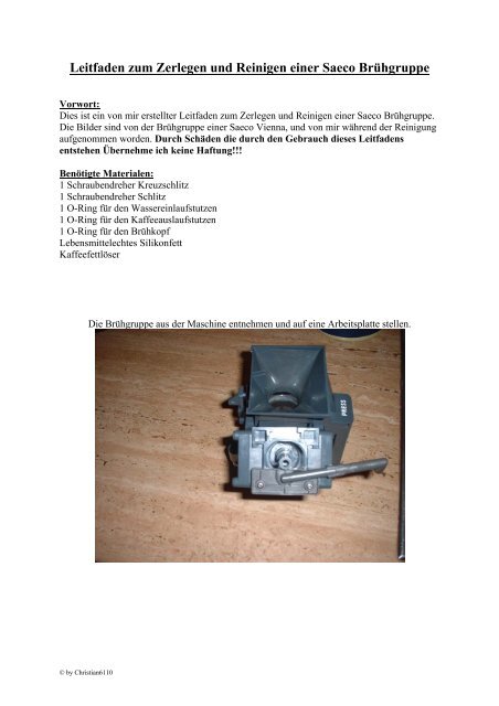 Leitfaden Zum Zerlegen Und Reinigen Einer Saeco Bruhgruppe Pdf Free Download