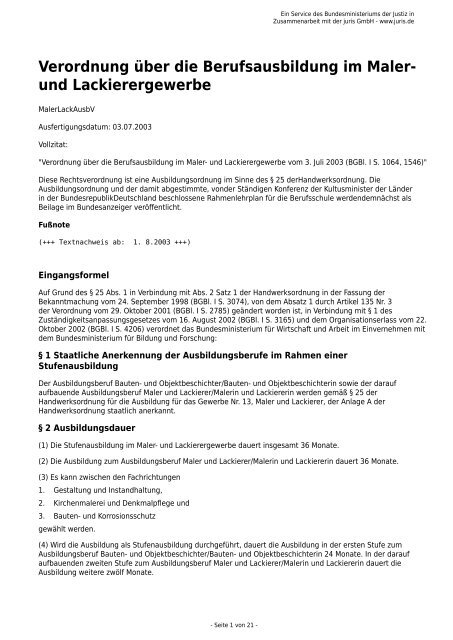 Www Malerinnung Rhein Erft De Fileadmin User Upload Pdf Ausbildungsverordnung Maler Pdf