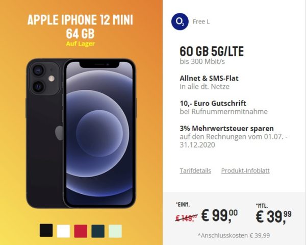 Apple Iphone 12 Mini 60gb Lte Alles Flat Im O2 Netz Fur 39 99 Monat