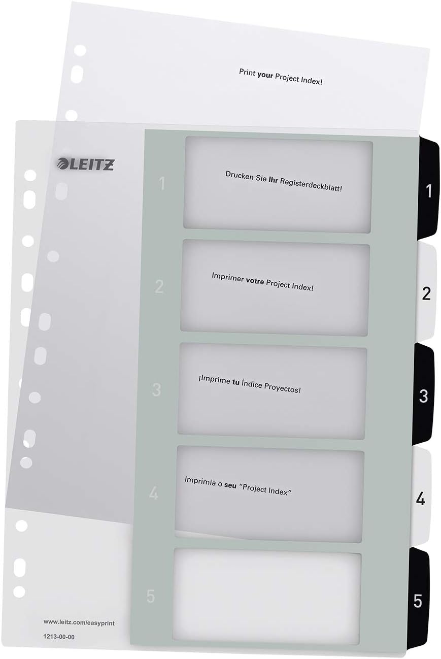 Leitz Register Fur Pc Beschriftbares Deckblatt Und 5 Trennblatter Taben Mit Zahlenaufdruck 1 5 Uberbreite Weiss Schwarz Polypropylen Wow Amazon De Burobedarf Schreibwaren