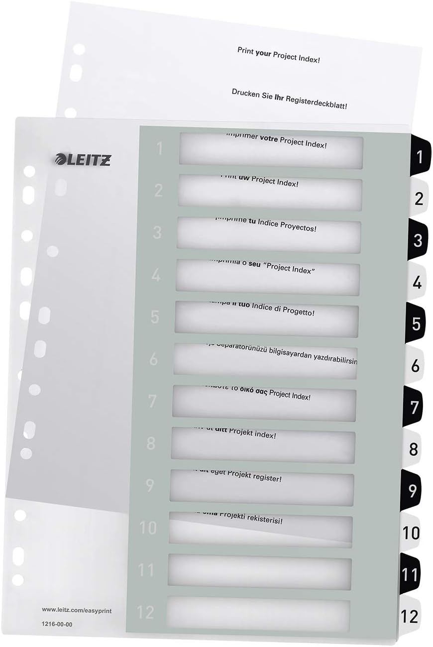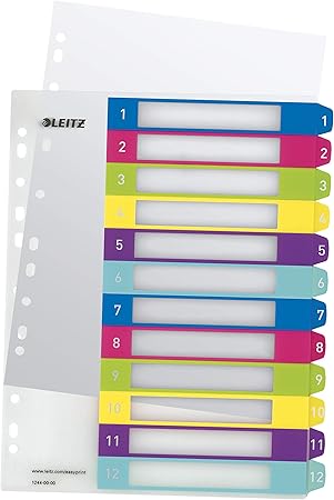 Leitz Register Fur Pc Beschriftbares Deckblatt Und 12 Trennblatter Taben Mit Zahlenaufdruck 1 12 Uberbreite Weiss Mehrfarbig Polypropylen Amazon De Burobedarf Schreibwaren