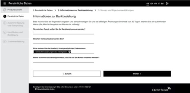 Gibt es eine BankingLösung, die Ihnen alles, was Sie zur Verwaltung Ihrer Finanzen brauchen, für CHF 0 pro Monat bietet?. Konto eröffnen Starten Sie Ihre neue BankingErfahrung mit CSX Es dauert nur 10 Minuten Die Credit Suisse CSX App ist die AllinOne Lösung für alle Ihre Finanzbedürfnisse Abgestimmt auf Ihre Anforderungen und Wünsche Digitales Banking ohne Kompromisse. Die Credit Suisse hat Anfang Juli ein System lanciert, durch das Neukunden mit Wohnsitz in der Schweiz ein Privatkonto über das Internet eröffnen könnenDie Bank identifiziert die neuen Kunden mit Hilfe von Swisscom Die Redaktion hat das sogenannte Digital Onboarding vor Ort ausprobiert und mit Sebastian Kistner, Mediensprecher der Credit Suisse, über die Entwicklung gesprochen.