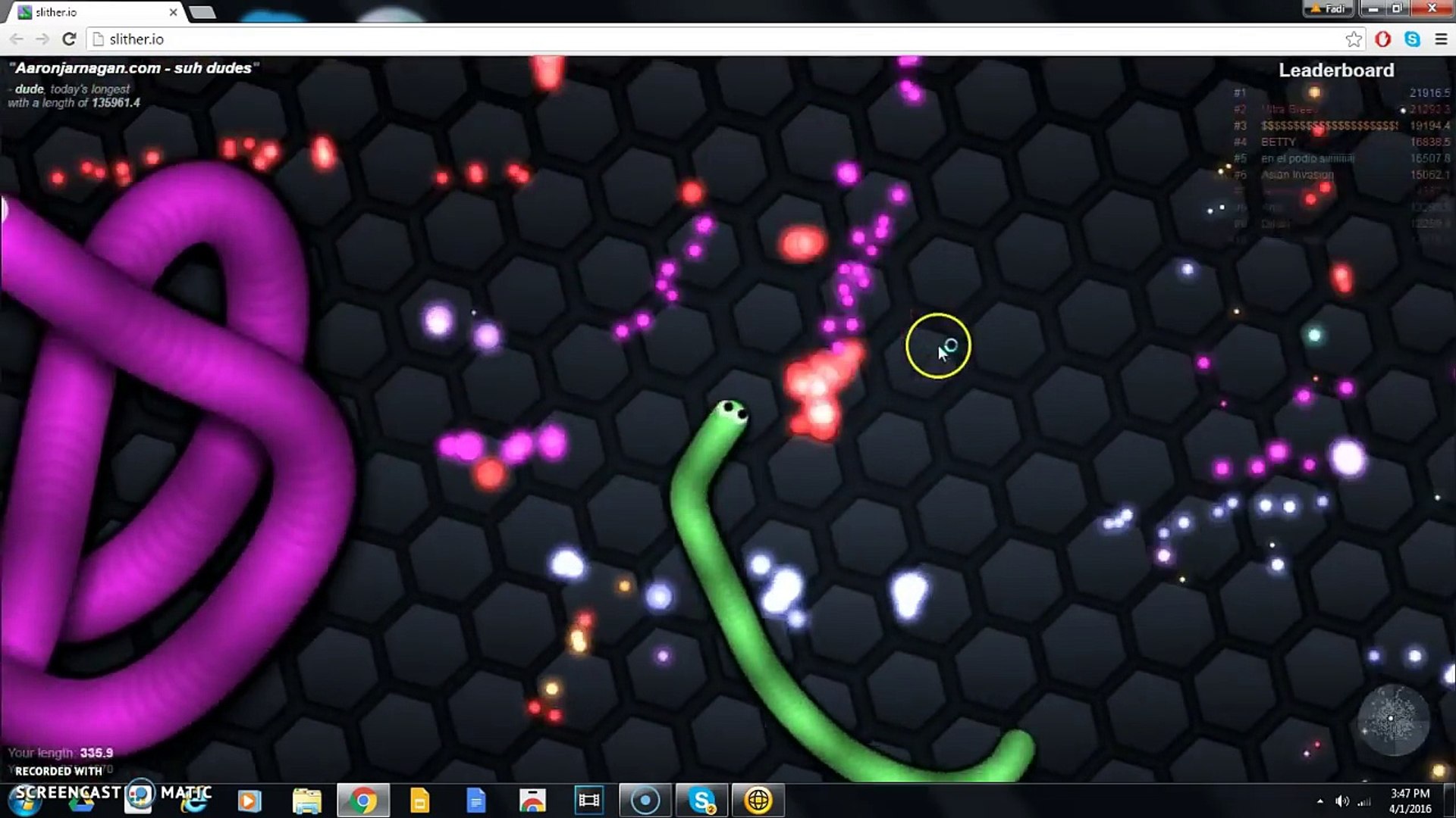 Http//wwwyoutubecom/WhaTheGame¡Visita mi canal principal!. With a game as popular asSlitherio, it is no surprise thatbots have been made However, no one could suspect the technological advancements stemming from a simple browser game Thebotsdesigned for Slitherio have superior AI and threat detection algorithms while, surprisingly, not cheating at all They are very easy to suspect and you can suspect abot by looking the way it moves Mostbotsgo. In order to preserve the Slitherio hack and keep it 100% up to date and functional our team of skilled game developers put a good deal of excessive work and a lot of restless night times To be perfectly secured and entirely anonymous, our team has ensured to design the Slitherio hack tool with powerful backend code mechanism that.