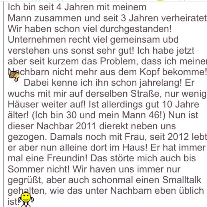 Habe mich bewusst für eine Beziehung entschieden, die mir vor allem Sicherheit gibt Verstehe also in diesem Zusammenhang dein Argument nicht. Jetzt ist es aber so, dass ich wieder zu Hause bin und dort die ganze Zeit einen ehemaligen Klassenkameraden und Nachbarn von mir sehe, mit dem ich den Sommer vor zwei Jahren verbracht habe und mich da schon in ihn verliebt habe Allerdings haben sich unsere Wege aufgrund des Studiums getrennt und wir haben uns fast nicht mehr gesehen. Trotz glücklicher Beziehung in einen anderen verliebt N'Abend Leute, bin wieder mal hier gelandet, in der Hoffnung, Rat von euch zu bekommen Ich bin.