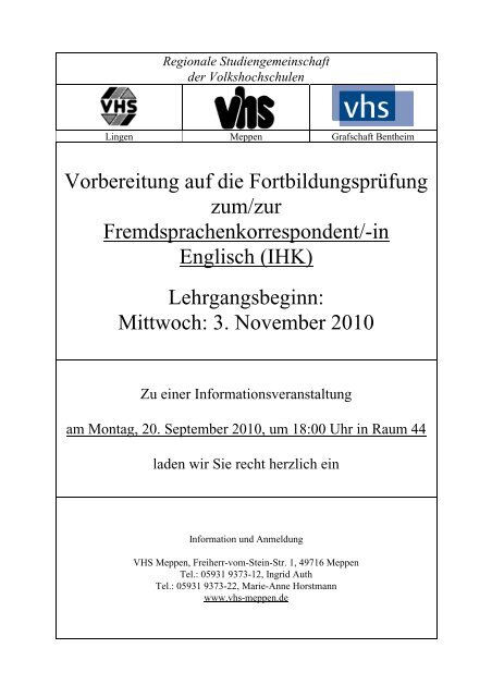 Fremdsprachenkorrespondent 10 12 Volkshochschule Meppen