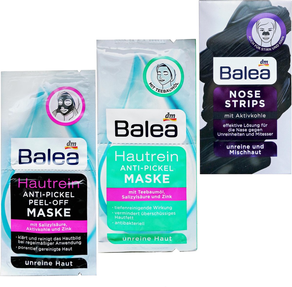 Die AntiPickel ThermoMaske ist angenehm in der Anwendung und hilft gegen vorhandene Hautunreinheiten Die Maske selbst ist recht zäh, wenn man sie wie angegeben auf der angefeuchteten Haut anwendet, lässt sie sich aber sehr gut verteilen Besonders positiv finde ich die kurze Einwirkzeit von 3 Minuten In dieser Zeit wird die Maske leicht warm. Die Peel Off Maske ist eine gelartige Masse, die auf der Haut langsam antrocknet Beim Abziehen der Maske sorgt die enthaltene Aktivkohle dafür, dass Mitesser, Schüppchen, Schmutz und Talgablagerungen an ihr kleben bleiben Die Gesichtsmaske ist vor allem für unreine Haut und Mischhaut geeignet Sie wird auch BlackHeadMaske genannt. In wenigen Schritten zu einem sichtbar verfeinerten Hautbild Die Balea Hautrein AntiMitesser Nosestrips machen’s möglich Angereichert mit Salizylsäure und Teebaumöl sind die Streifen die perfekte Lösung, um gezielt gegen Unreinheiten vorzugehen Die antibakterielle Wirkung beruhigt die Haut und.