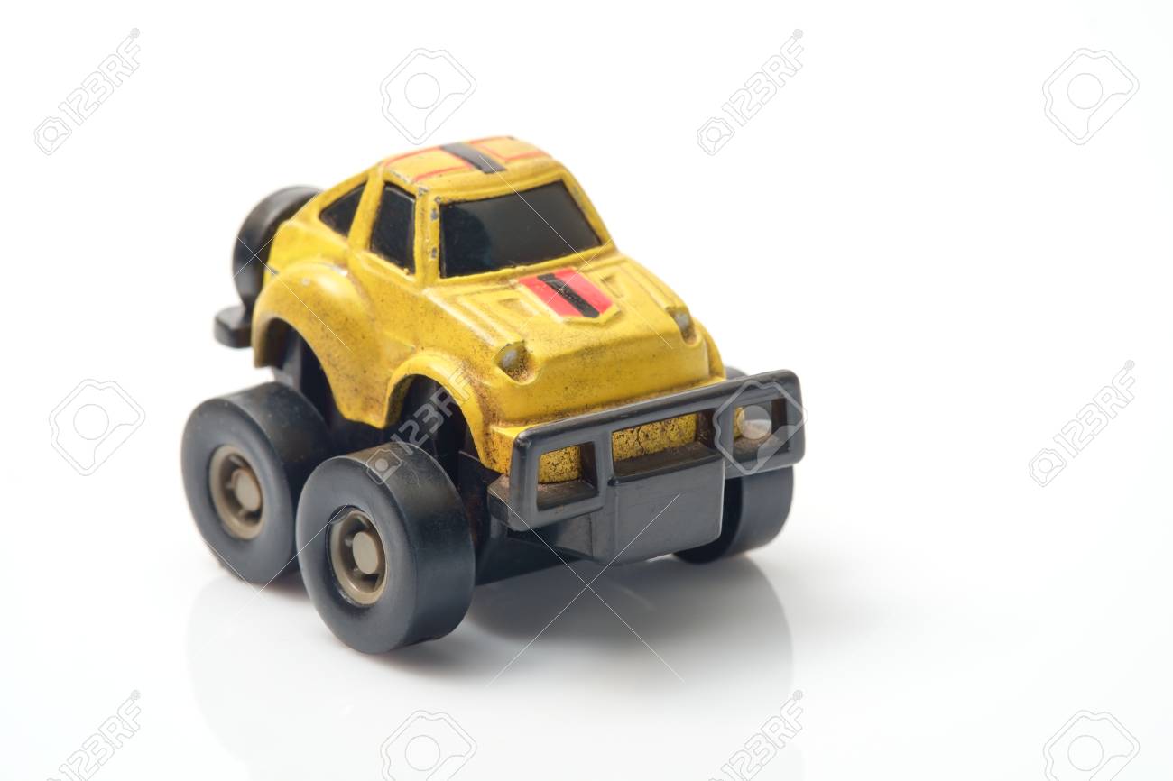 Gelbes Auto Spielzeug Auf Weissem Hintergrund Lizenzfreie Fotos Bilder Und Stock Fotografie Image