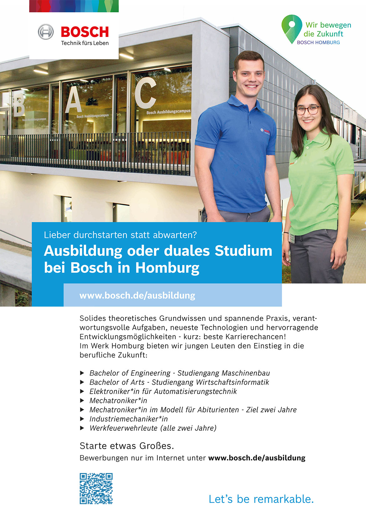 Haben Sie Fragen, Anmerkungen oder Vorschläge?. Pro Jahr stellt Bosch 1500 neue Auszubildende in insgesamt 30 Berufen ein Bewerber*innen für technische Berufe in Ausbildung, dualem Studium und Direkteinstieg bittet Bosch grundsätzlich zum Auswahltag in eine Konzernniederlassung – dort warten ein kniffliger Einstellungstest und weitere Aufgaben. Duales Studium 21 Global Career Duale Studiengänge Zeig uns deinen Wissensdurst!.