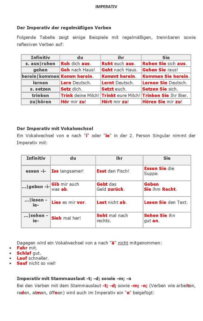 Imperative Gegenlesen Check Forms Rules Examples Translation Definition Exercises Downloads