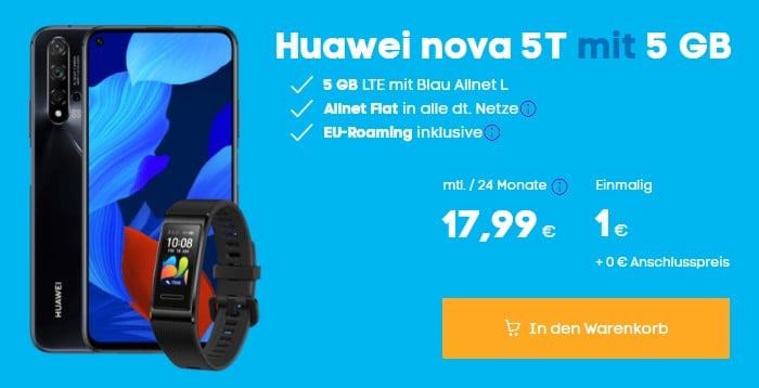 Huawei Nova 5t Mit Blau Allnet L Fur Nur Eff 1 Mtl