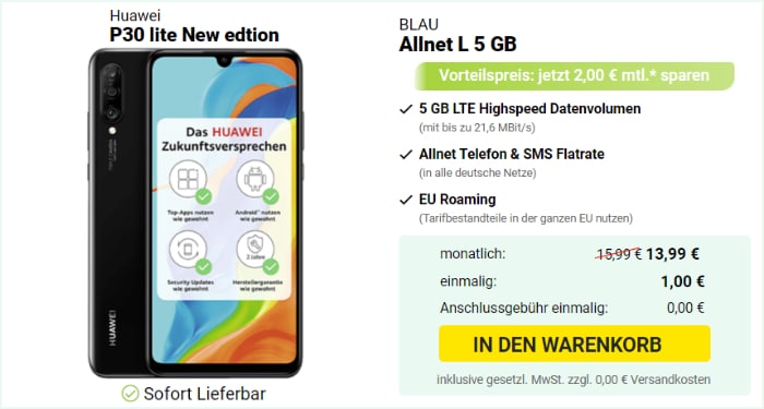 Huawei P30 Mit Zwei Zugaben Blau Allnet Effketiv Kostenlos