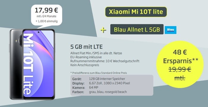 Xiaomi Mi 10t Lite Blau Allnet L Fur Eff 6 19 Mtl