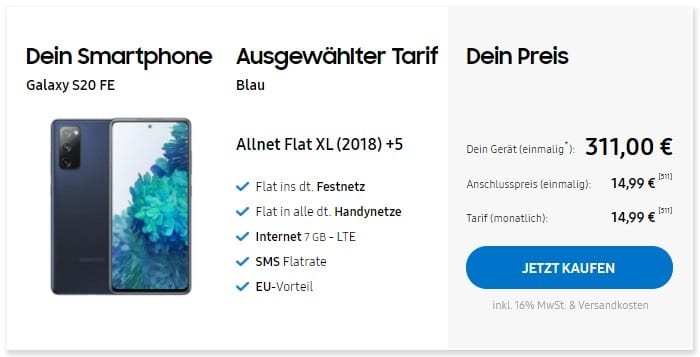 Samsung Galaxy S Fe Blau Allnet L Fur Effektiv 5 70 Mtl