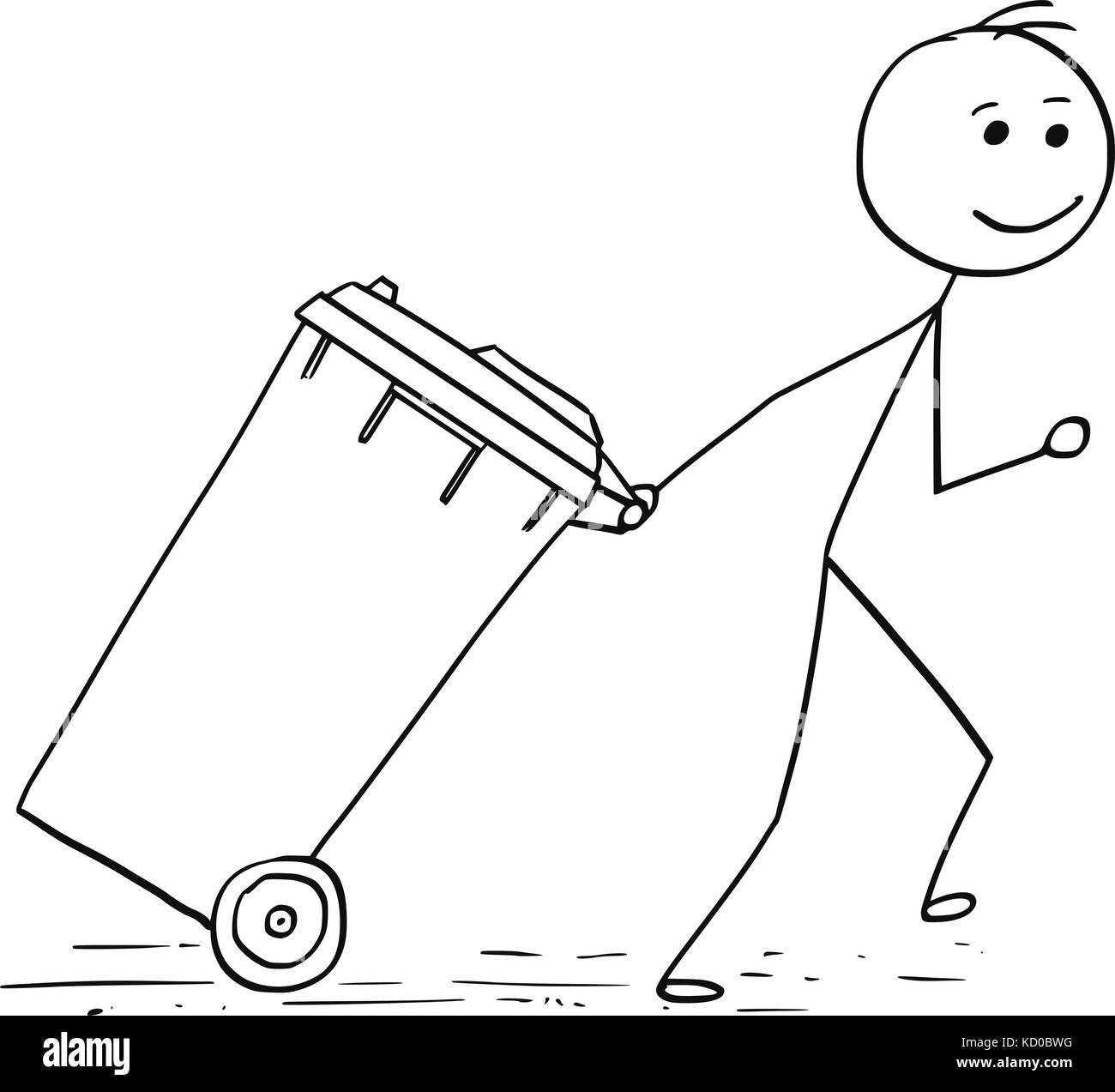 Cartoon Stick Mann Abbildung Des Menschen Ziehen Mulltonne Stock Vektorgrafik Alamy