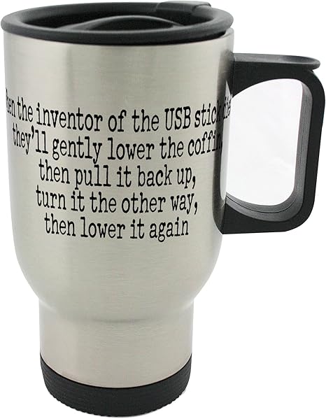 Wenn Der Erfinder Des Usb Stick Stirbt Sie Sanft Unten Den Sarg Dann Ziehen Es Back Up Turn It Der Anderen Art Dann Sie Wieder Senken 14oz Edelstahl Tasse Amazon De Kuche Haushalt