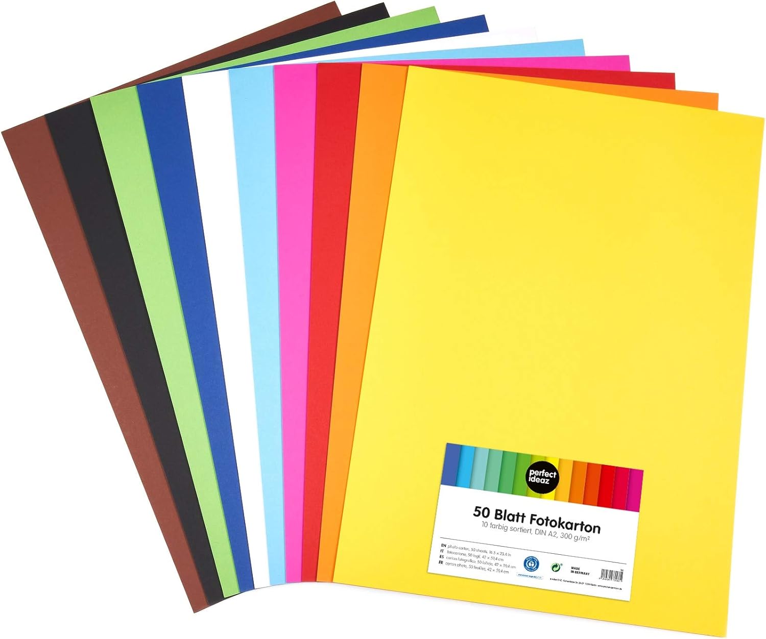 Perfect Ideaz 50 Blatt Din Foto Karton Bunt Bastel Papier Bogen Durchgefarbt 10 Verschiedene Farben 300g M Ton Zeichen Pappe Zum Basteln Buntes Blatter Set Farbig Plakat Bedarf Amazon De Burobedarf Schreibwaren