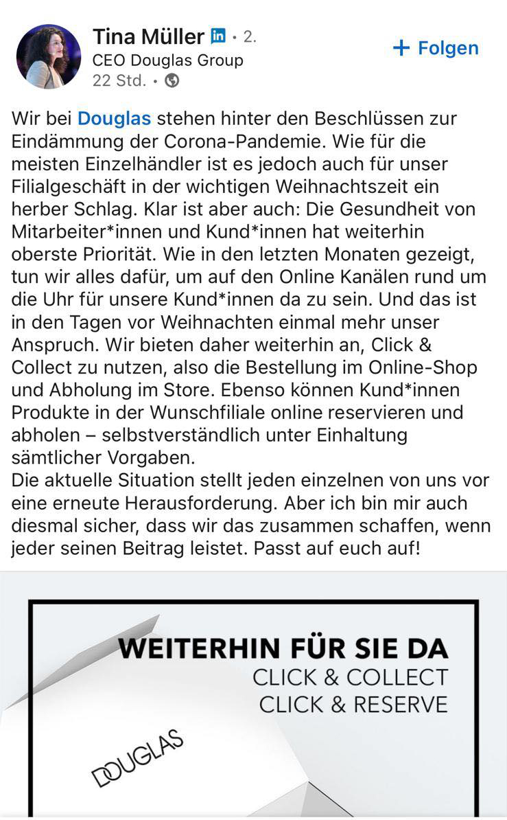 Also ich hab vor 12 Wochen eine Bewerbung an Douglas verschickt,aber leider habe ich bei meinem Anschreiben keine Adresse von der DouglasFiliale hingeschrieben,weil ich mir nicht sicher war welche Filiale gemeint war Also bei der Stellenanzeige stand nur die Stadt,aber es gibt 2. Hier mein text Bewerbung um einen Ausbildungsplatz als Kauffrau im Einzelhandel. Douglas wirbt immer damit, das man unendliche viele Karrierechancen hat Die FL gibt einem nicht einmal die Info, das man die Ausbildung, wenn man möchte unter folgenden Umständen verkürzen kann Das sogenannte „AzubiGespräch“ , welches geführt werden muss, dauert Max 5min und es wird nicht auf deine Wünsche oder Probleme eingegangen.