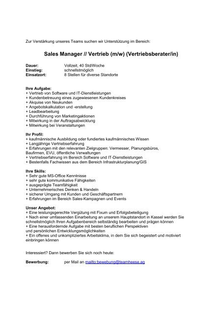 Stellenbeschreibung Sales Manager