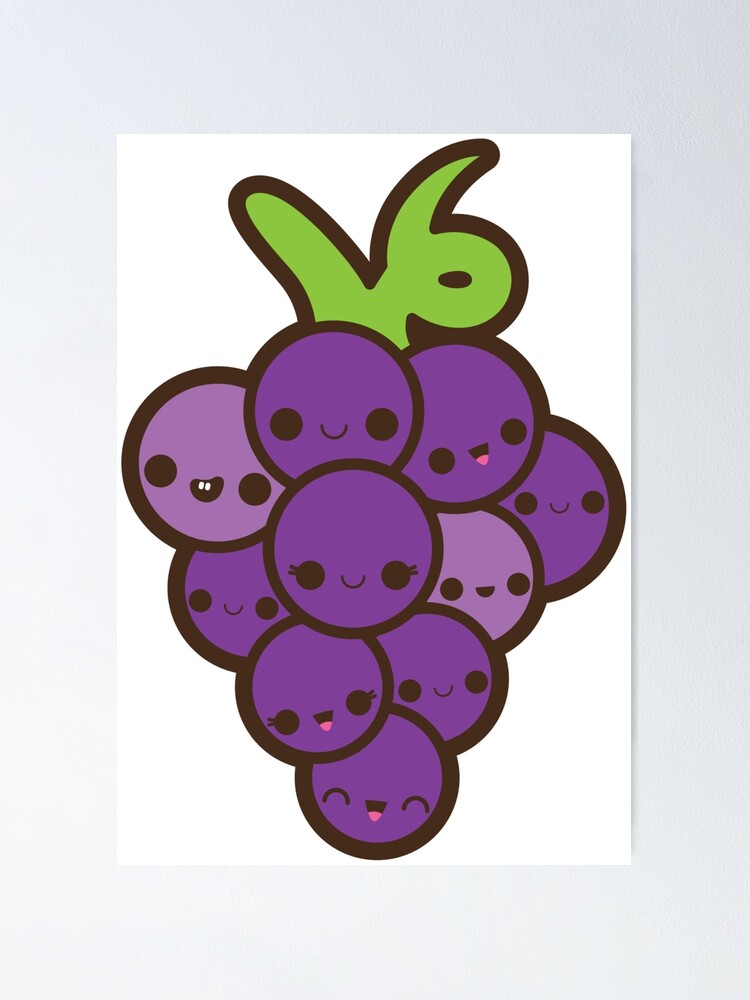 Cute Grape Smile Kawaii Poster By Annafokina Redbubble