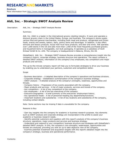 Aldi Inc Strategic Swot Analysis Review Research And Markets