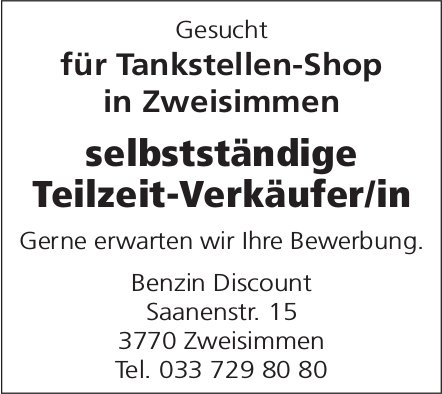 Selbststandige Teilzeit Verkaufer In Gesucht Tankstellen Shop