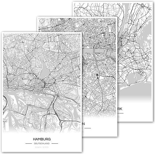 Zulumaps 3er Set 30x45cm Poster Stadtplan Hamburg London New York Hochwertige Kunstdrucke Amazon De Kuche Haushalt