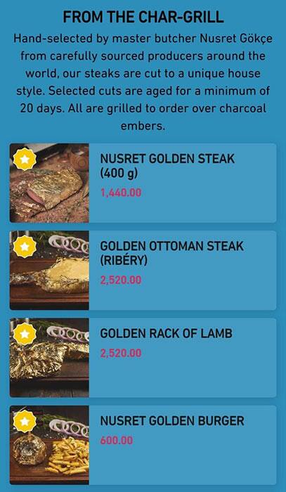 Nusr Et Steakhouse نصرت ستيك هاوس منتجع فور سيزونز دبي في جميرا بيتش Menu