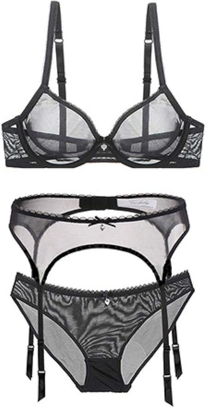 Xiepeidp Europaische Und Amerikanische Unterwasche Ultradunnes Transparentes Netz Bh Set Plus Strumpfband 3 Teiliges Set Amazon De Bekleidung