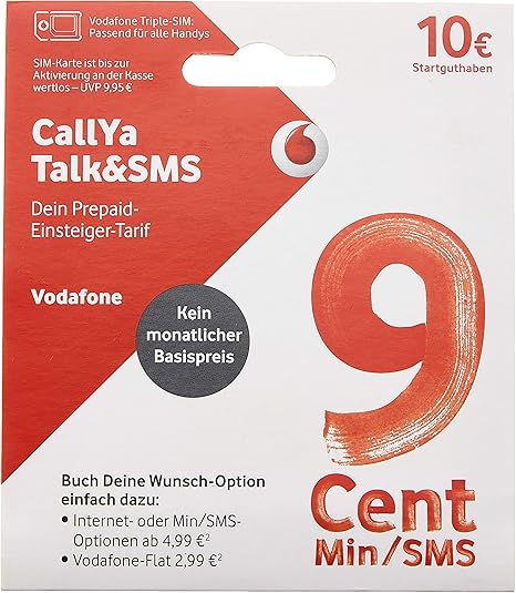 Vodafone Callya Simkarte Prepaid Tarif Talk Und Sms Inkl 10 Eur Startguthaben Prepaid Karten Dsl Kabel Mobilfunk Shop