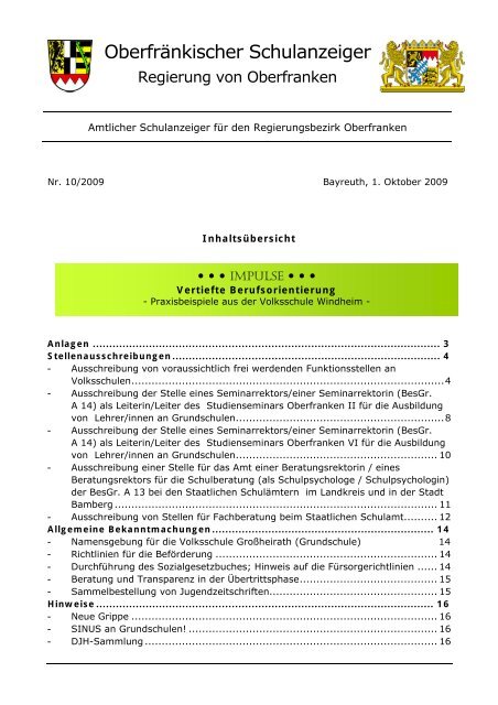 Oberfrankischer Schulanzeiger Regierung Von Oberfranken Bayern