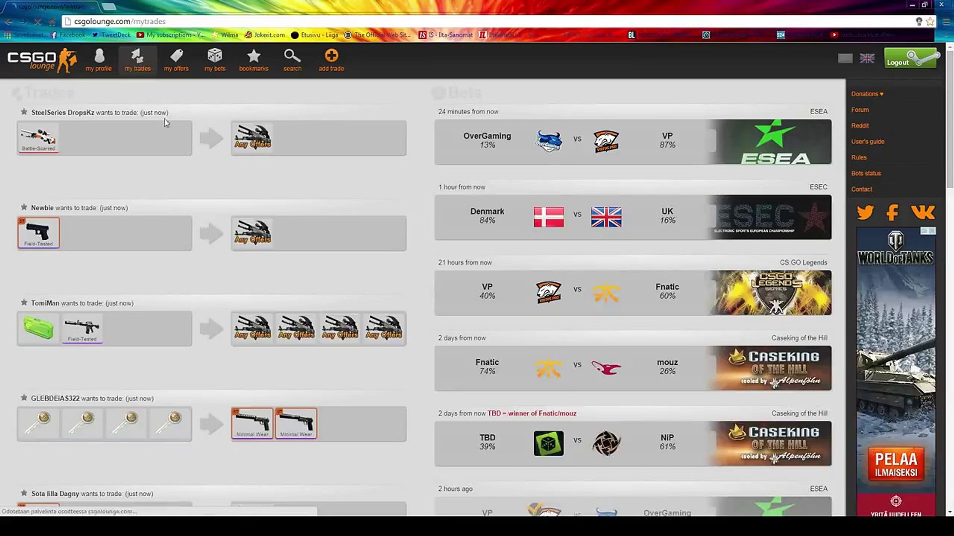 You may need to logout and log in again for changes to take effect. Csgolounge Betting CSGO GIVEAWAY!. ℹ️ Best CSGO Trading bot items Website CSGO Trade skins Get rid of unnecessary items and get that for so long wanted!.