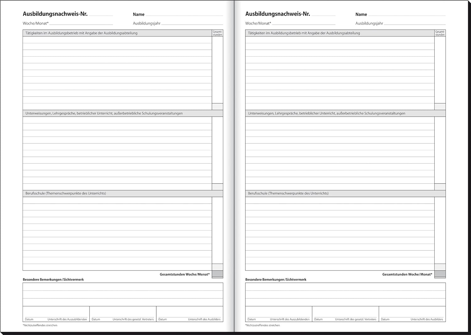 Sigel Aw484 Ausbildungsnachweisheft Berichtsheft Fur Wochentliche Oder Monatliche Eintragungen 28 Blatt Amazon De Burobedarf Schreibwaren