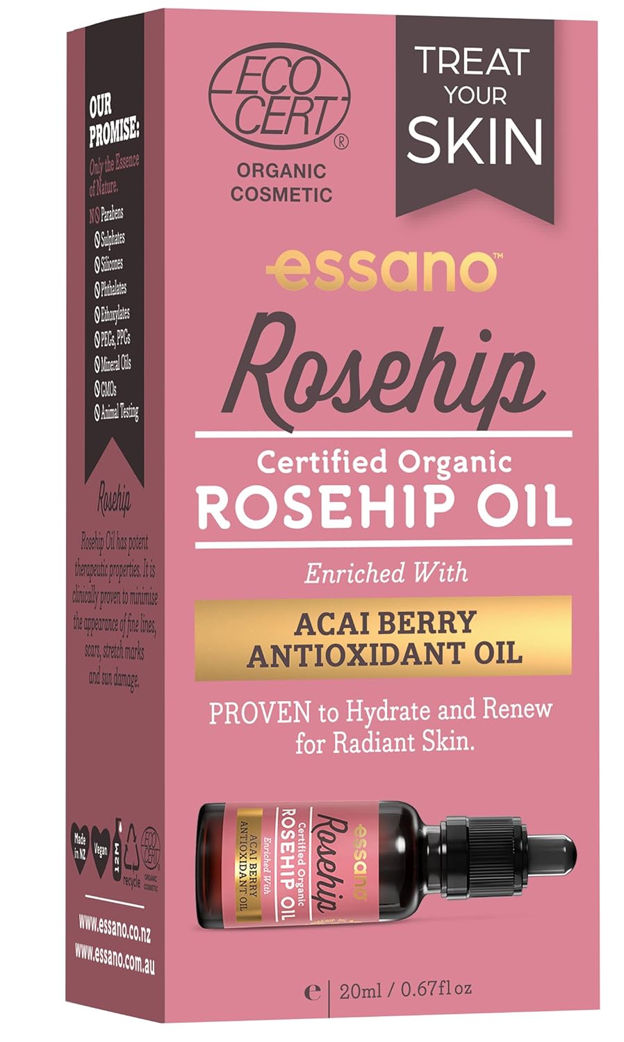 Amazon Com Essano Organic Rosehip Oil With Antioxidant Acai Berry ml 0 6 Oz Body Oils Beauty