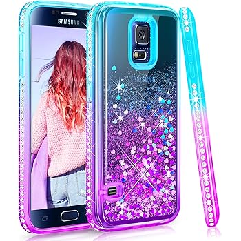 Amazon Com Galaxy S5 Case S5 Glitter Case With Tempered Glass Screen Protector 2 Pack For Girls Women Leyi Bling Sparkle Diamond Liquid Quicksand Flowing Cute Phone Case For Samsung Galaxy S5 Teal Purple