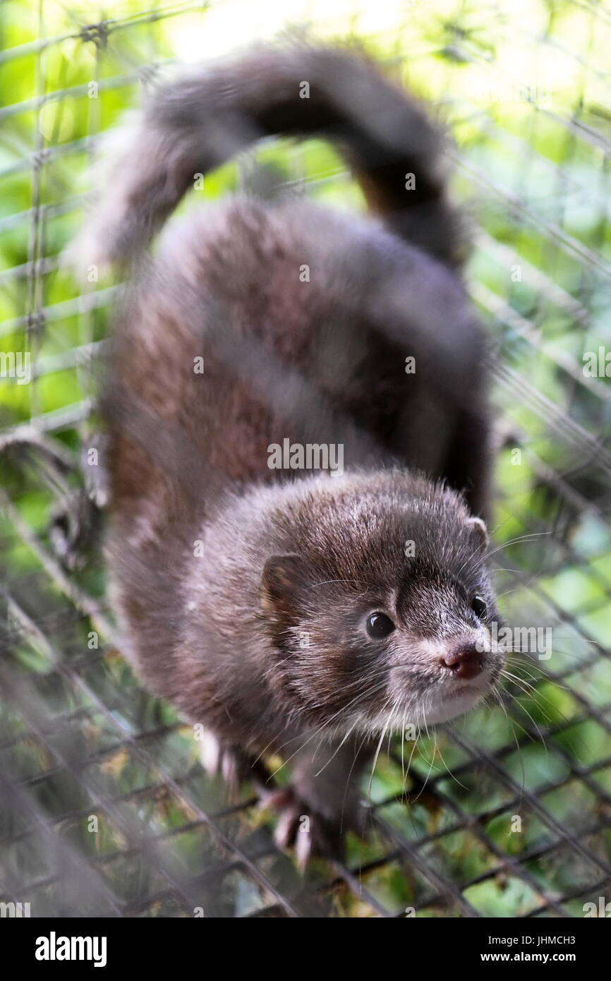 Nowosibirsk Russland 14 Juli 17 Eine Domestizierte Nerz Gesehen In Einem Gehause Auf Einer Versuchsfarm Des Institut Fur Zytologie Und Genetik Der Sibirischen Abteilung Der Russischen Akademie Der Wissenschaften Forschungsbereich Des Instituts