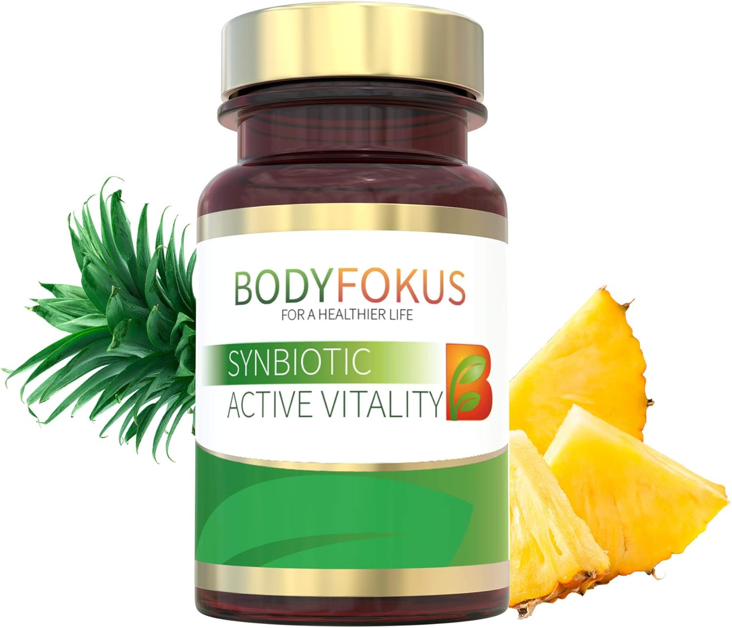 Das dritte und recht neue Produkt heißt SynBiotik Vital Aktiv des deutschen Herstellers BodyFokus Eine Monatspackung enthält 60 Kapseln, die morgens und abends, am besten vor einer Mahlzeit, mit viel Flüssigkeit eingenommen werden. BodyFokus SinBiotic Vital Active è stato sviluppato secondo i più alti standard qualitativi in Germania ed è un alleato affidabile per l'intestino L’uso è molto semplice e richiede solo 30 secondi al giorno Basta assumere una capsula al mattino prima di colazione e una capsula prima di cena. BodyFokus SynBiotic Active Vitality contains approx 10 billion probiotic bacteria from 13 different bacterial strains In addition, we have added the prebiotic fibres inulin an oligofructose Prebiotics are components of food that the body cannot digest – generally fibres – that are fermented by microorganisms in the gut.