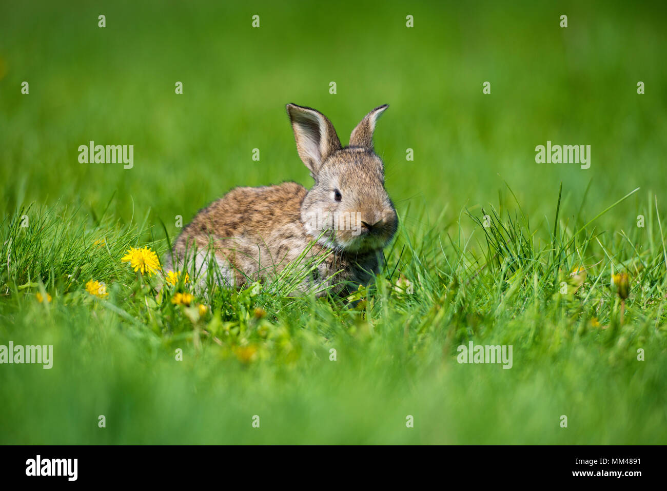 Fruhjahr Kaninchen Auf Einer Wiese Mit Lowenzahn Lizenzfreie Fotos Bilder Und Stock Fotografie Image