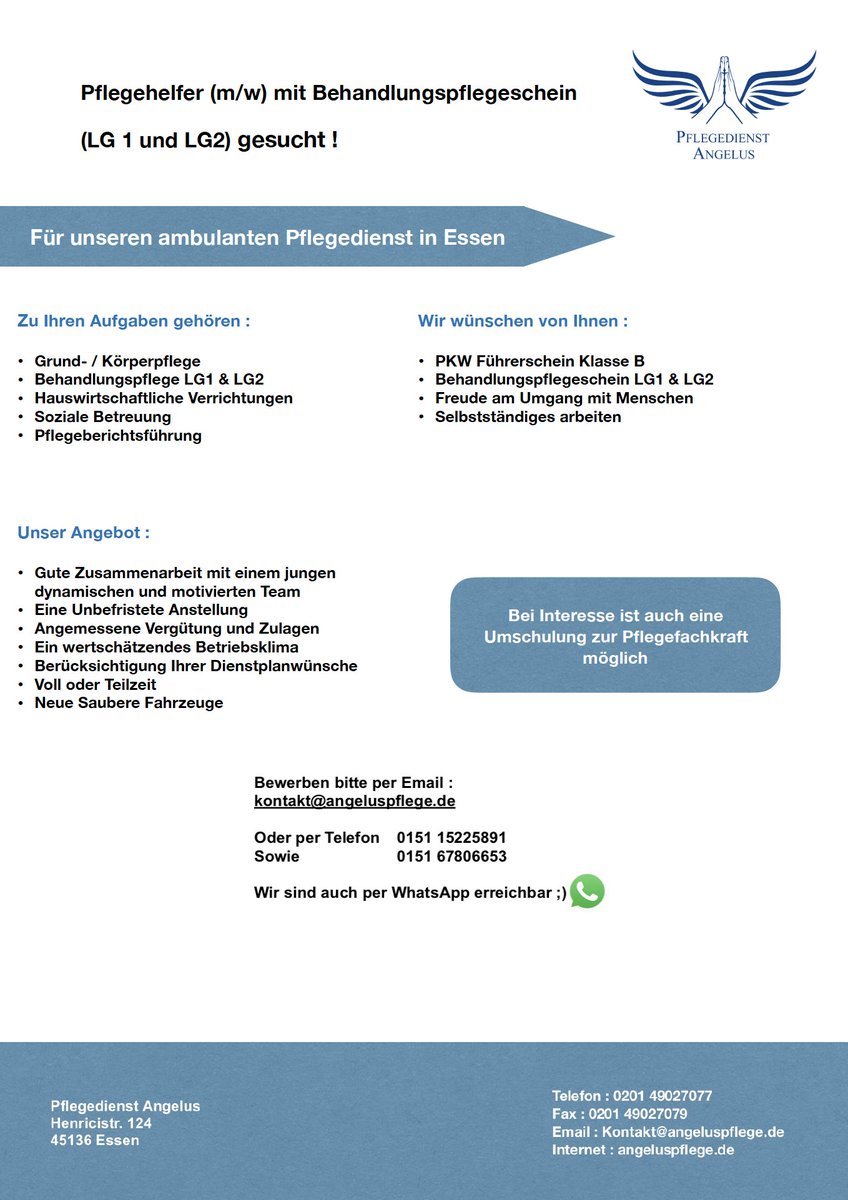 Die Pflegeagentur 24 ambulante Alten und Krankenpflege sucht als junger und dynamischer ambulanter Pflegedienst stetig Unterstützung Um unseren Kunden eine qualitativ hochwertige Dienstleistung anbieten zu können suchen wir weitere Mitarbeiter für die kompetente und liebevolle Versorgung und Beratung unserer Kunden. BITTE BEACHTEN SIE Dieses Muster Bewerbungsschreiben als Ambulante BetreuerIn ist wie alle anderen Muster Bewerbungsvorlagen nur als Beispiel gedacht Ein Bewerbungsschreiben ist in der Regel nicht länger als 1 Um diese Bewerbungsvorlagen so gut wie möglich zu jeder situation zu Verbinden sind unsere Briefe länger als üblich, also. Jasper ist ein ambulanter Fachpflegedienst für die Betreuung von Langzeitbeatmungs und Intensivpflegepatienten.
